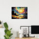 Pastel Drawing Colourful Nighttime Landscape Moon Poster