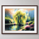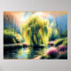 Pastel Drawing Garden Pond Weeping Willow Tree Poster