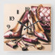 Pastel Drawing Pink Heels Purse Cosmetics Square Wall Clock