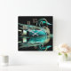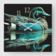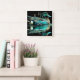 Pastel Drawing Teal Duck on Water Square Wall Clock