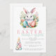Hop into spring with us for a delightful Pastel Easter Brunch and Egg Hunt! Gather 'round for a whimsical morning filled with fun, food, and festivity. Whether you're a bunny enthusiast or simply looking for a delightful way to welcome spring, our Pastel Easter Brunch & Egg Hunt promises an enchanting experience for all. A cute watercolor bunny rabbit surrounded by Easter eggs adorns the invitation, setting the tone for a whimsical and joy-filled celebration. Edit all information on this little bunny rabbit pastel easter invitation.