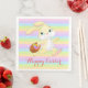 These napkins are a colourful and festive addition to your family Easter party. They feature pastel stripes with the Easter bunny holding a basket. Happy Easter is in pastel print at the bottom of the napkins.