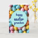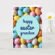 This design shows an overhead view packed edge to edge with smooth, egg-shaped candies that look freshly polished, like a sweet spring spread meant to be shared. Soft pastel tones—sky blue, lemon yellow, blush pink, apricot orange, and creamy white—sit close together, creating a cozy, friendly closeness in the way the colors mingle 🌷. The rounded surfaces catch the light with a gentle shine, giving the whole scene a tender, cared-for look. In the middle, a calm circular badge in light turquoise creates a quiet space amid the busy candy background. Centered on that circle is the message “happy easter grandson,” written in dark blue, flowing handwriting-style lettering. The dark blue text stands out clearly against the turquoise, like a note placed carefully where it can’t be missed, with the surrounding candies forming a cheerful frame 🐇. The final look is a turquoise circle at center, surrounded by tightly packed pastel eggs filling the entire background.