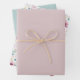 This Easter‑inspired wrapping paper set features three beautifully coordinated sheets that capture the gentle joy of the season. The first sheet showcases a soft pastel floral pattern filled with blush‑pink blooms, sunny yellow accents, and airy teal and green foliage—perfect for evoking the freshness of an Easter garden. The second sheet offers a smooth, solid light‑pink design that adds a sweet, springtime softness and pairs effortlessly with the floral print. The third sheet completes the trio with a muted teal sheet, bringing a calm, modern balance to the palette. Together, these three designs create a harmonious Easter aesthetic full of warmth, renewal, and spring charm.