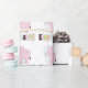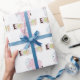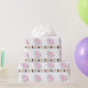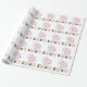 Wrapping paper with a tiled pattern of pink and blue elephants with the word 'elephants' printed underneath. Perfect for wrapping a baby shower gift!