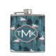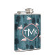 Pastel Flamingos On Teal | Monogram Hip Flask