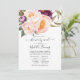 Pastel peach and pink floral baby shower by mail invitation with accents of plum.