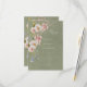 This simple but elegant wedding response card design features a bouquet of pink, yellow, and lavender flowers with greenery on a sage green distressed background. It's part of the Pastel Floral Modern Green Wedding Suite created by Simply Farmhouse Press.