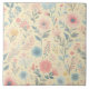 Pastel Floral Pink & Blue on Light Yellow Ceramic Tile