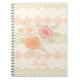 Beautiful spiral notebook with decorative background and flower pattern, personalise text or text is removable, colour are cream, pink, and peach with green.