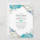 Dusty blue and turquoise pastel watercolor floral virtual long distance bridal or baby shower invitation designed to be quickly and easily customised to your specifics.