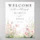 This design features a delicate, romantic watercolor illustration of wildflowers in shades of green and pink.