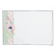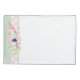 Pretty white pillow case, with a solid green band and a pink and white polka dot band running across the hem side of the case. Beautiful pastel coloured flowers and butterflies decorate the hem side of the case. Customise to add any text you want. Matching duvet cover and throw pillows available.
