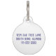 I looked through a lot of pet stores and web sites then I saw Zazzle and a tag with guitars in the background so we added his name and photo o nether front and our phone numbers on the back. It was beautiful and unique just perfect