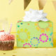 Squares in circles on shimmering lime green!