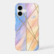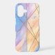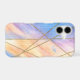 A soft pastel marble-inspired case featuring watercolor hues of blue, peach, and lavender intersected by elegant gold lines, complete with a delicate monogram — the perfect mix of art and sophistication.