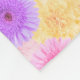 A soft flower pattern custom blanket with a gerbera daisy print in delicate pastel pink, peach, lilac and blue includes a template area for her name in modern typography making a unique gift for a lady or a girl.