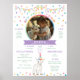 Celebrate your baby’s big milestone with this charming first birthday poster, featuring a watercolor baby goat in a rainbow party hat, festive pastel bunting, and colourful confetti. Personalise it with your child’s photo, name, birth stats, favourite things, and more. This adorable design is perfect for petting zoo or farm-themed parties and makes a sweet keepsake or photo prop for capturing your little one's first year.
