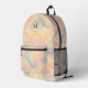Carry your essentials in style with this chic backpack featuring a pastel marble design in peach, aqua, and lavender tones, accented with luxurious gold veins. Includes an editable initial for a personalised touch—perfect for school, travel, or everyday use. A trendy and elegant accessory for those who love unique, artistic designs.