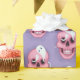 Pastel goth skull wrapping paper with a funny gothic feel depicting a pink skull with two ghosts passing through its eye sockets. This spooky cute design is great for people who like gothic aesthetic and also pastel colours.