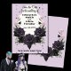 Save the date stationery for those planning a pastel Goth themed wedding. Black flowers and pastel backgrounds mauve and puples.