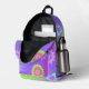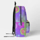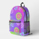 Express yourself with this retro pastel gradient purple, pink and green background colours backpack. Decorated with multi-coloured flowers, butterflies and psychedelic shapes pattern.