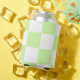 Pastel Green Chequerboard Retro Modern Checks Can Cooler