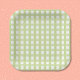 A pretty spring paper plate with a soft green Gingham check pattern . Perfect for Easter or any other spring celebration .