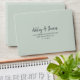 Chic, modern and simple self-addressed RSVP envelope with your names in off-black elegant handwritten script calligraphy on a pastel green background. Perfect for your wedding! Simply add your names and address. Exclusively designed for you by Happy Dolphin Studio.