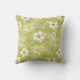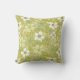 This throw pillow features flowers and leaves in shades of white, light green, and pale yellow.