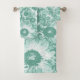 Pastel Grey Teal Green Floral Pattern Bath Towel Set