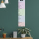 Growth chart poster of light pastel colors of pink, blue, green, and purple in the background. Keep or change it, when you customize it. Track your child's growth with this growth chart. Begins at 17 inches and ends at 65 inches. Change the "Name" on the chart. Resize the text or add a different font. Add clip art or little drawings from your child to the chart. Create your design look.