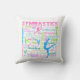 Gymnastics typography throw pillow with beautiful, bright colours! Gymnastics terms and phrases such as, "stick it, balance beam, salto, tumbling pass", and more fill this pillow making it the perfect item for your room decor! The print is on both sides.