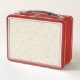 This is a standard metal lunchbox that appears to work just fine. We designed this box ourselves with an uploaded photo and custom text on the front and back. It looks absolutely beautiful except the front of the lunchbox is not centered like it shows in the photo. The print borders don't align with the inset flat part of the box where the preview photo online showed it perfectly centered in there. The back looks nice and centered though.