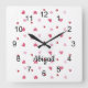 Little girls and big ones will love this simple heart patterned wall clock personalised just for them. Pattern created in assorted pastel pink colours tossed on a white background. Just edit the optional name text in the easy Zazzle text editor. Your choice of round or square.