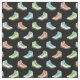 This patterned fabric is perfect for crafting projects with an outdoorsy theme. Illustrations of hiking boots in pretty pastel colours are set against a black background.