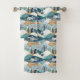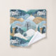 A modern, abstract landscape pattern with hills in white, aqua, and gold interspersed with green trees creates a beautiful and stylish bath towel set  that you will love.