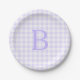 Pastel Lavender and White Gingham Monogrammed Paper Plate