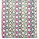 This shower curtain has a mid-century modern design of white “deformed” circles connected with black lines on a field of pale green, pale pink, pale blue, and pale yellow strips. If you like the design but prefer different colours, message me.
