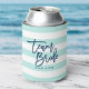 Keep your drink cans cool with this stylish can cooler featuring the words "Team Bride" in blue trendy script against a preppy pastel mint and white pattern background. Perfect for weddings, bridal showers and bachelorette parties. For other matching items see here https://www.zazzle.com/collections/119250194970828530?rf=238364477188679314