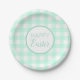 Pastel Mint Green Happy Easter Plaid Pattern Paper Plate