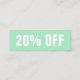 Trendy, minimalist, modern and simple discount card in pastel green / mint green.