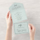 This all-in-one invitation features a pastel mint backdrop paired with a modern script font, exuding minimalist elegance. The clear and easy-to-read design ensures your guests receive all the essential information for your wedding celebration.