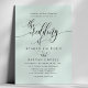 Invite loved ones to celebrate your special day with this elegant pastel mint wedding invitation. Featuring a minimalist design with modern script and delicate typography, this invitation sets the tone for a sophisticated and memorable event. The soft colour and clean lines add a touch of grace and simplicity, making it ideal for a stylish wedding celebration. Customise the details to create a unique and beautiful invitation for your wedding day.