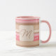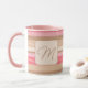 This mug has a beautiful yet simplistic pattern of stripes and dots in shades of pink, brown and cream. The monogram letter on the mug is customisable and would make a great personalised gift.