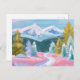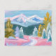 Pastel Mountain Range Winter Scene | Paint Strokes Holiday Postcard