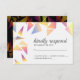 Add a touch of artistic elegance to your impending nuptials with these wedding RSVP cards, which feature multi-coloured triangle confetti set on a white background. Reverse shows triangle confetti on a contrasting black background. Use as is, or personalise as desired. A beautiful memento for pastel confetti wedding themes!