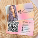 Simple soft purple ombre pink gold holographic rainbow logo initial hair makeup photo logo qr code with a brushed script typography add your business photo . Add your social media. With an elegant signature script font, all the colours are editable , add your logo.