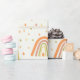 Add a touch of sunshine to every gift with this boho rainbow wrapping paper featuring soft pastel rainbows in orange, coral, yellow, and green with delicate small raindrops over white background. Perfect for baby showers, kids’ birthdays, gender-neutral celebrations, and feel-good gifting. A sweet blend of modern boho and whimsical charm that works year-round.