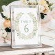 Elegantly timeless, these bohemian wedding table numbers showcase a delicate watercolor wreath of paster orange floral wreath, complemented by a simple and minimalist green text for a touch of sophistication.